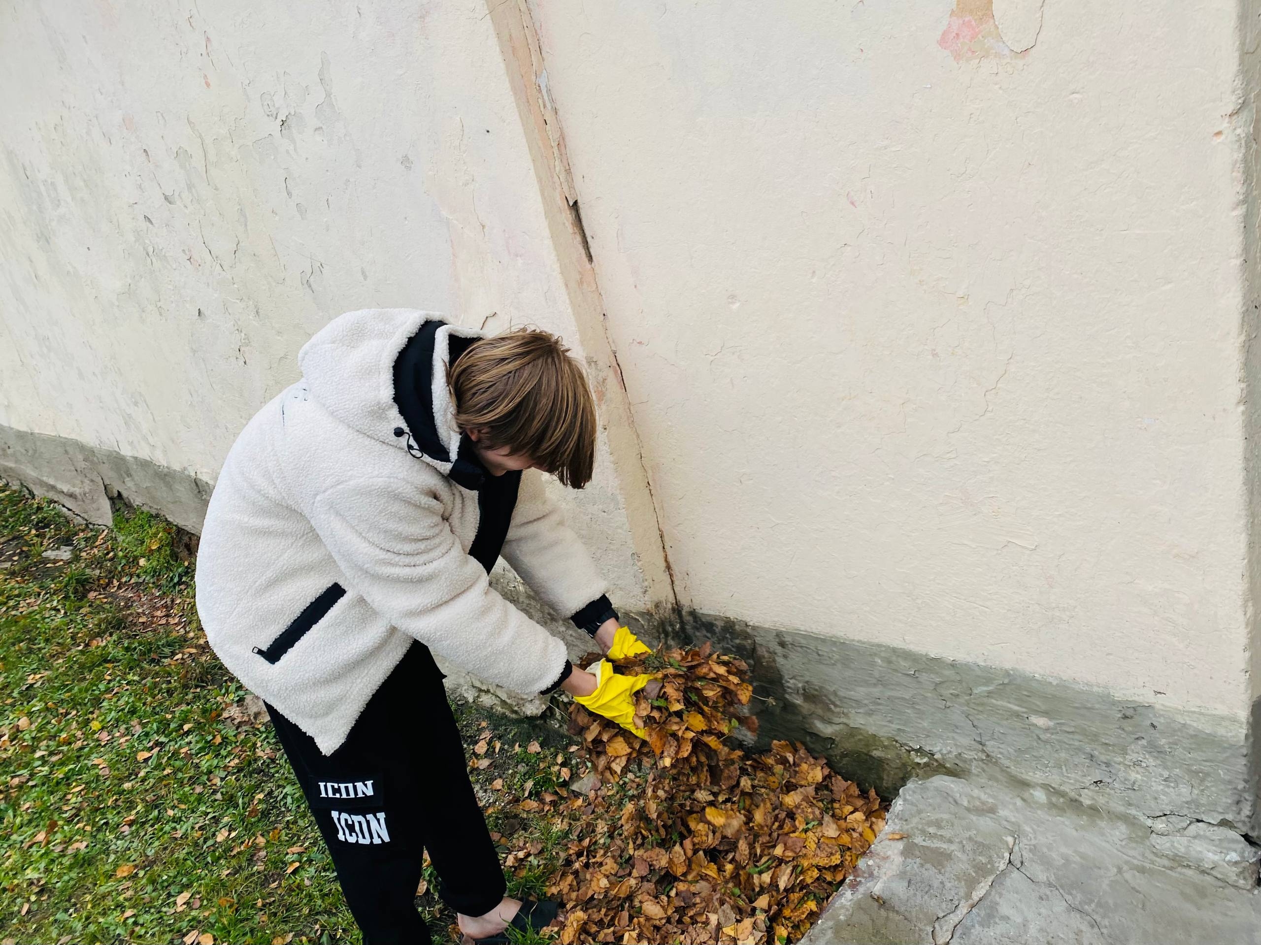 🧹 Все вместе дружно наводили порядок вокруг своего общежития: собирали мусор, старые ветви деревьев, сгребали листву и траву.
